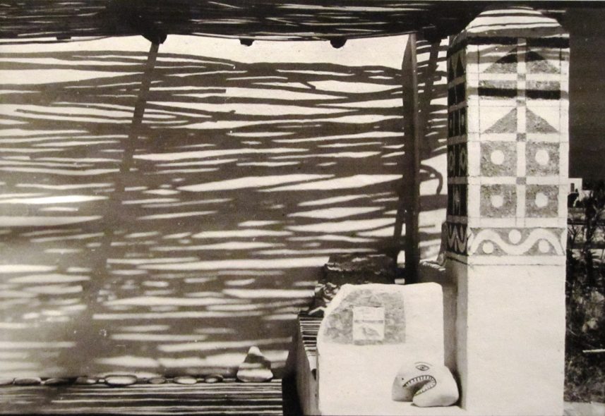 Επιστροφή στην Ελλάδα μετά από δύο χρόνια. Θυμάμαι αυτή την περίοδο πολύ αμυδρά, αυτό που θυμάμαι όμως καλά ήταν οι ζωγραφιές που διαχέονταν στον παιδικό μου κόσμο παίρνοντας την ένταση του πραγματικού, τον συμπλήρωναν και τον διαμόρφωναν υποσυνείδητα και δίχως όρους. Γιατί ο πατέρας μου δεν ζωγράφιζε απλά πίνακες. Η κοσμοθεωρία του άρχιζε να παίρνει σάρκα και οστά σε κάθε γωνιά της νέας μας κατοικίας. Το υπέρθυρο κεφάλι/κοχλίας ζωγραφισμένο πάνω από την πόρτα στην είσοδο του σπιτιού. Τα ένθετα, ζωγραφισμένα κεραμικά ή πέτρινα σκαλισμένα ανάγλυφα στους τοίχους. Τα πέτρινα υπέρθυρα στα παράθυρα με τα χρωματιστά ένθετα γυαλιά και τέλος το πλακόστρωτο στην αυλή με σκαλίσματα, ψηφιδωτά, ανάκατα, γοργόνες, καβαλάρηδες, πουλιά και όστρακα, ήλιοι και φεγγάρια, ένα σύνολο παράξενο μυθολογικό και μαγευτικό, εικόνες της λαϊκής παράδοσης, μαγνήτιζαν τα μάτια ενός παιδιού.